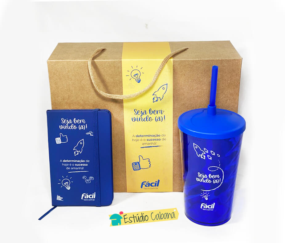Imagine o colaborador chegando na empresa, e sendo recibo com um presente que acompanha um bloco de anotações para organizar o seu dia, uma caneta para escrever sua história de sucesso, um marca texto para marcar suas conquistas, um lápis para anotar suas boas ideias, uma borracha para corrigir os erros e seguir em frente, uma garrafa de água para se manter sempre hidratado e um sorriso, para lembrar o quanto a empresa está feliz em tê-lo na equipe?!