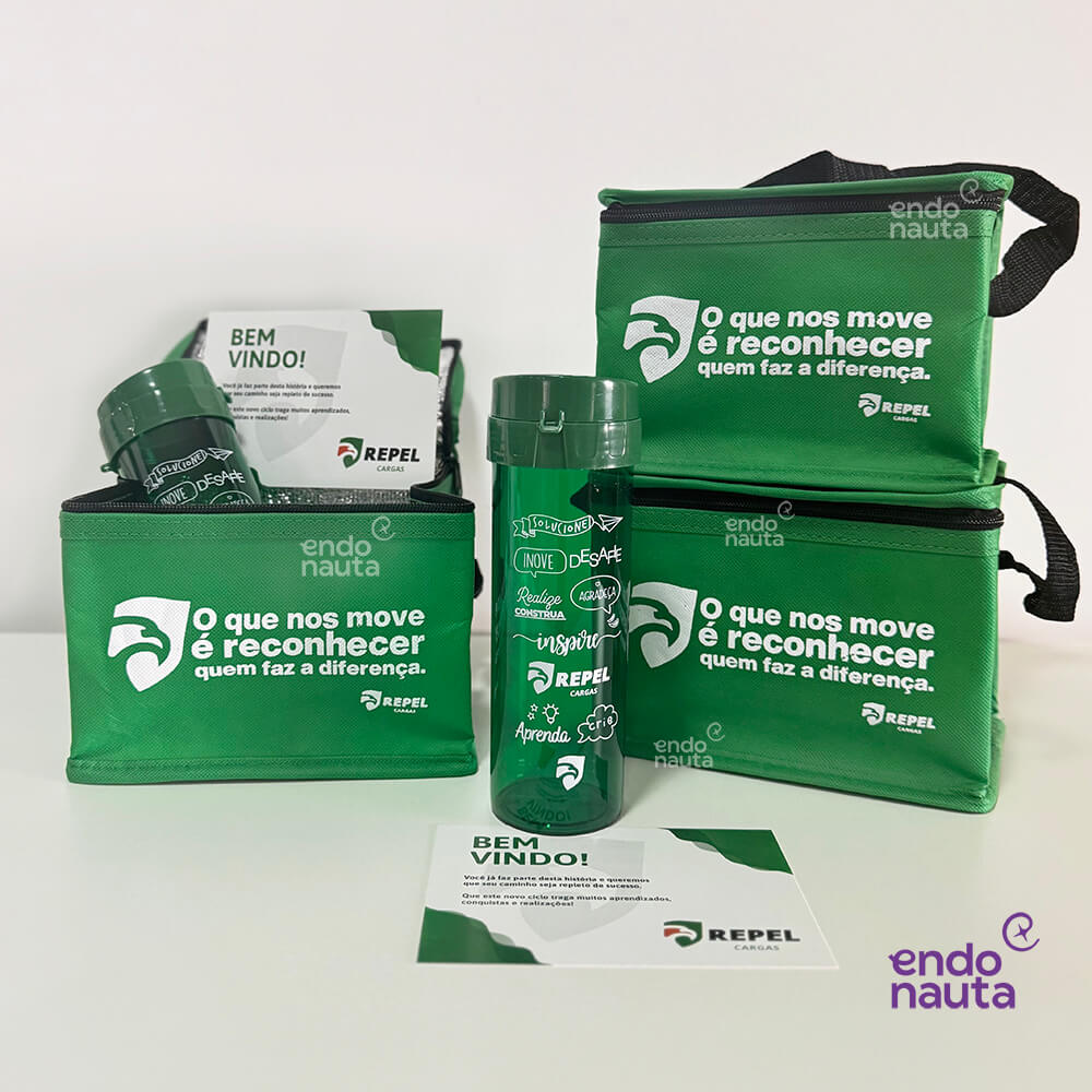 Um kit onboardind de boas vindas personalizado para empresa com ótimo custo benefício para empresas que desejam iniciar a jornada do colaborador com engajamento! O Kit acompanha Bolsa Térmica Basic, Garrafa Acquabio e Cartão Personalizado.