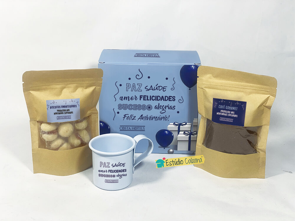 Que tal presentear suas funcionárias com um delicioso Kit Café no Dia da Mulher? Este brinde personalizado para o Dia da Mulher acompanha Caixa, café, biscoitos e caneca, tudo personalizado com a sua identidade visual!