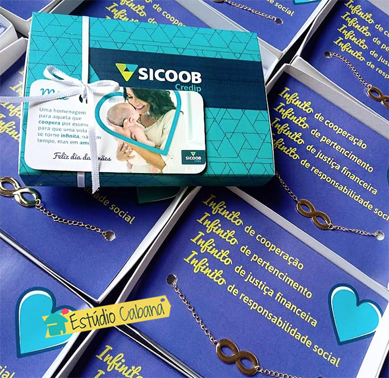 A Caixa Infinito é um maravilhoso presente personalizado para o dia das Mães da sua empresa, contém uma caixa personalizada com conceito de valorização e motivação para as mães com a pulseira do infinito.