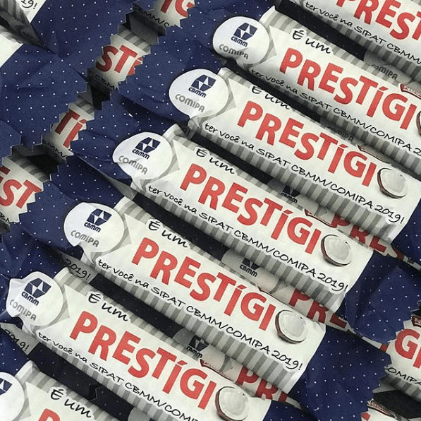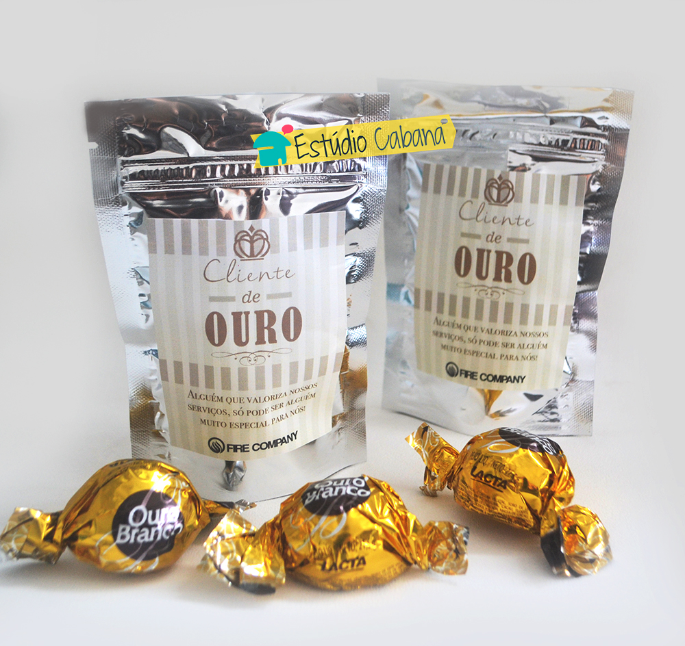 Saquinho metalizado personalizado contendo 03 bombons Ouro Branco para presentear os Corretores. Um excelente brinde corporativo para o Dia do Corretor de Imóveis!