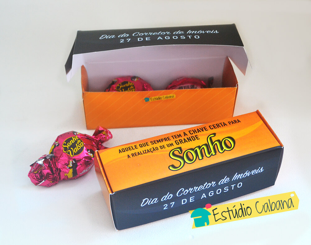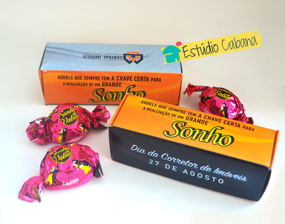A Caixinha Dia do Corretor contém 03 bombons Sonho de Valsa Lacta, brinde para adoçar o Dia do Corretor!