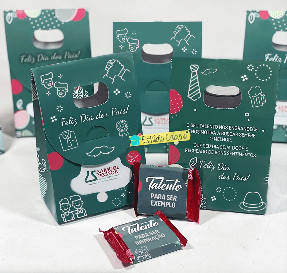 Tamanho da caixinha fechada: 12cm x 4cm x 4cm. Uma lembrança empresarial especial para o dia dos Pais da sua empresa.