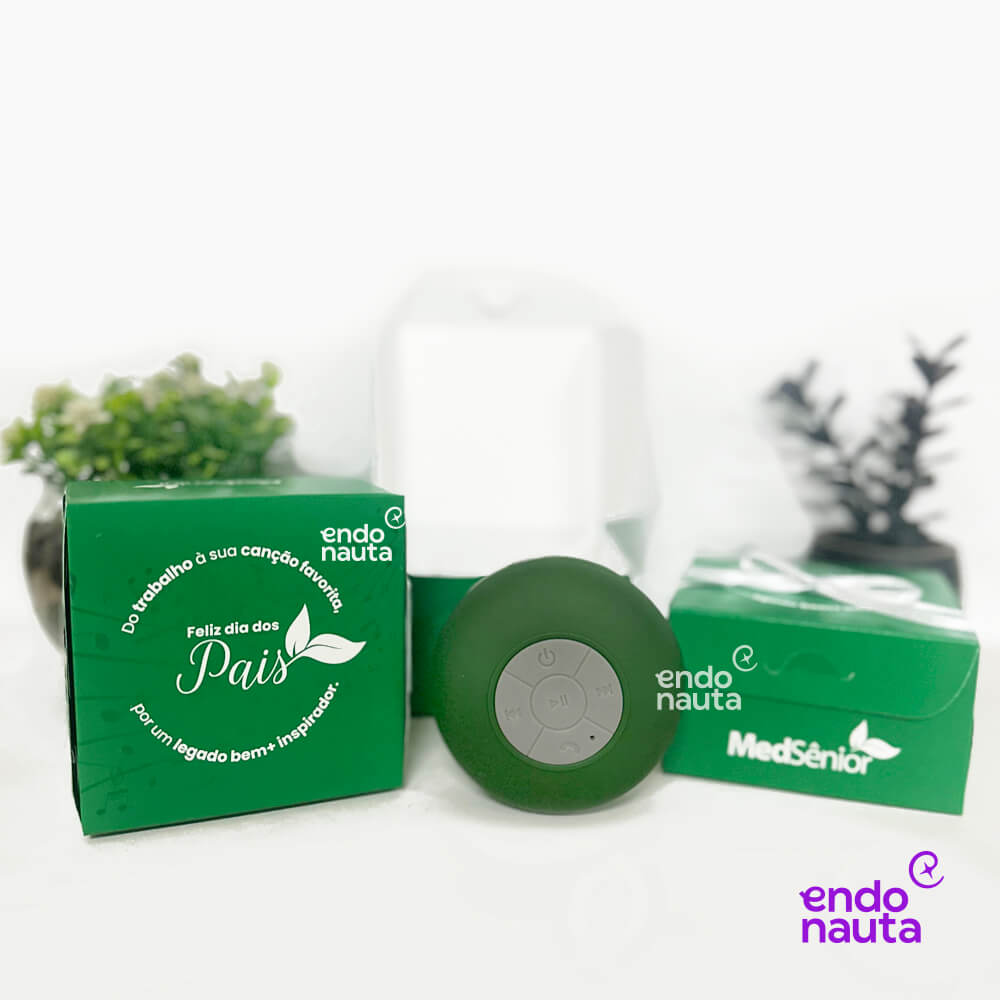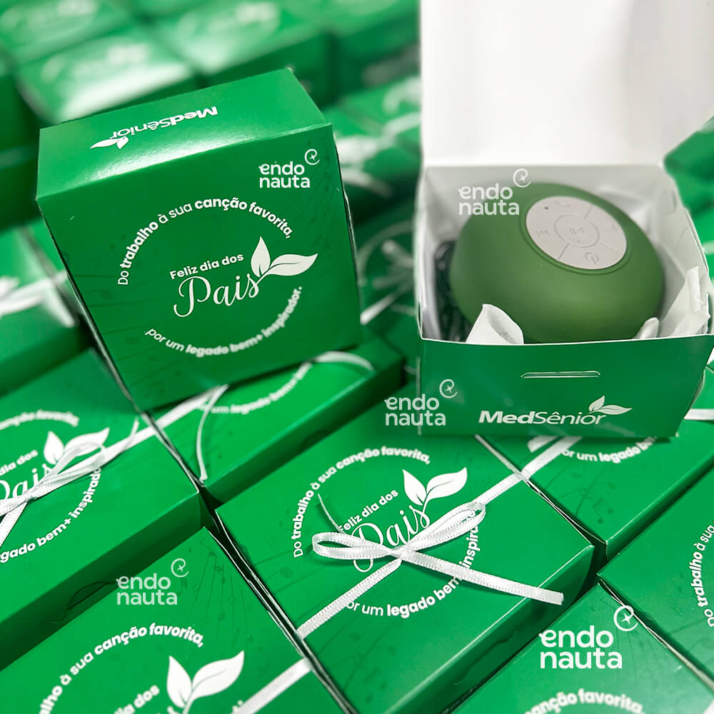 Aposte em um presente corporativo criativo com o Kit Alto Astral! Uma caixa personalizada e uma caixa de som bluetooth, disponível em várias cores, para iluminar o Dia dos Pais.