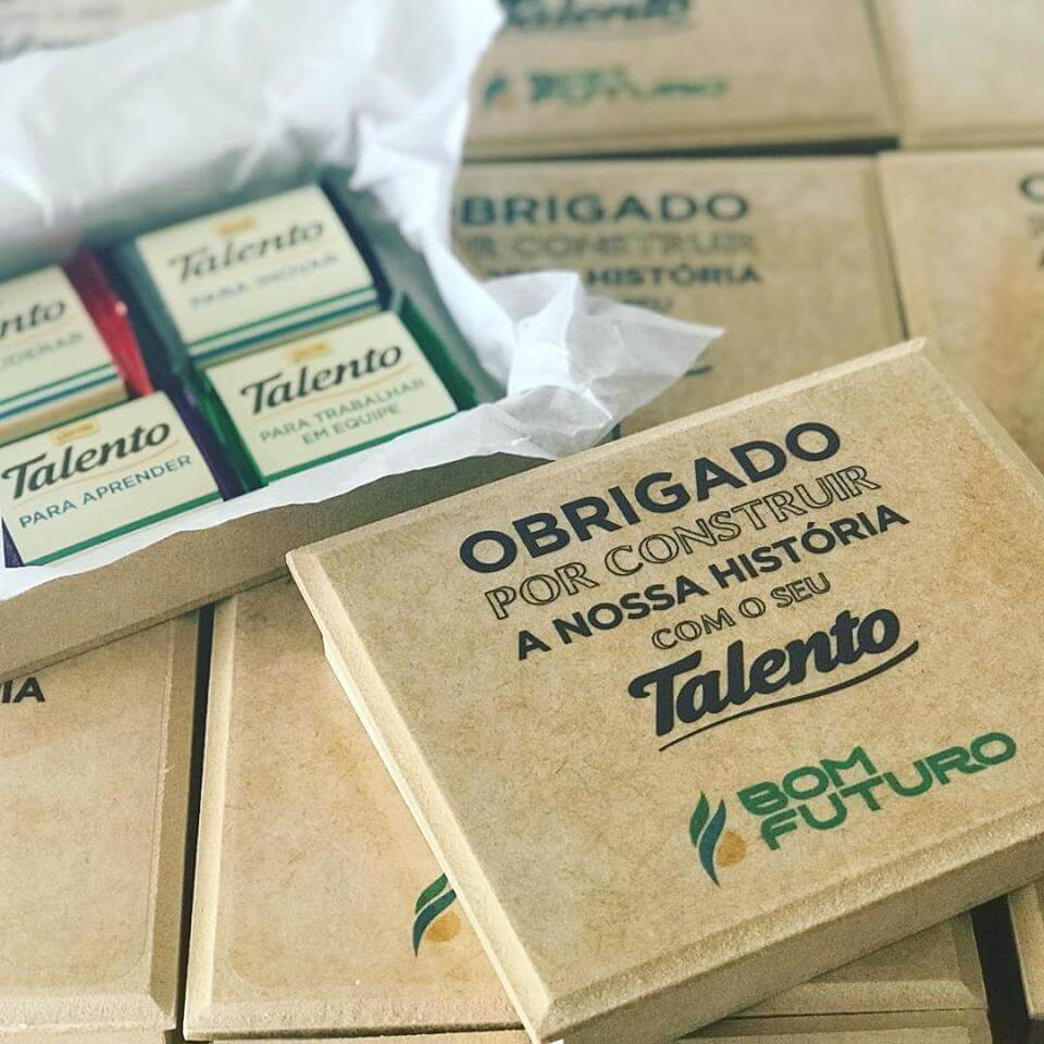 A Caixa de Talentos é uma ótima solução de presente! A Caixa personalizada contém 06 barrinhas de chocolate Talentos Garoto 25g Personalizados. Cada barrinha, um talento a ser valorizado.