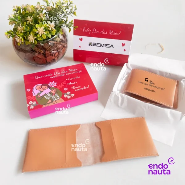 O Kit Carteira “Não Economize” Dia das Mães é uma opção sofisticada para presentear as mães da sua equipe com um brinde que carrega um significado profundo. Ele foi desenvolvido para demonstrar que o carinho, o reconhecimento e a admiração não possuem limites, transformando a ação de endomarketing em um momento genuíno de valorização e conexão.
