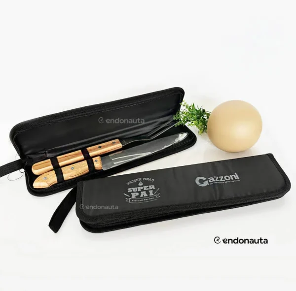 01 Estojo Personalizado – Embalagem elegante que mantém os utensílios organizados e protegidos, personalizada com a identidade visual da sua empresa ou o tema da campanha.