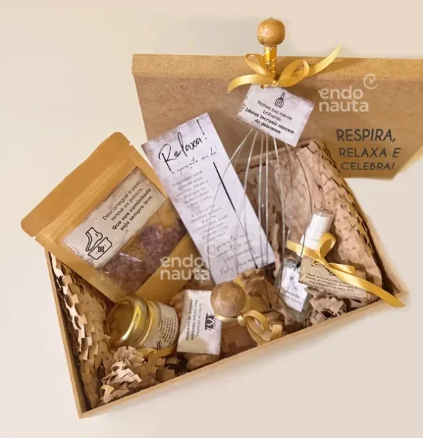 O Kit Respira e Celebra é um convite ao autocuidado com propósito. Mais do que um presente, ele é um ritual completo. Criado para proporcionar uma pausa simbólica na rotina, este kit transforma aniversários e datas especiais em momentos de presença e conexão profunda, levando a assinatura de cuidado que a sua empresa deseja transmitir.