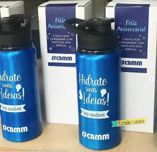 Incentivo ao Bem-Estar – Mais do que um item útil, o squeeze representa o cuidado da marca com a hidratação e os hábitos saudáveis da sua equipe.